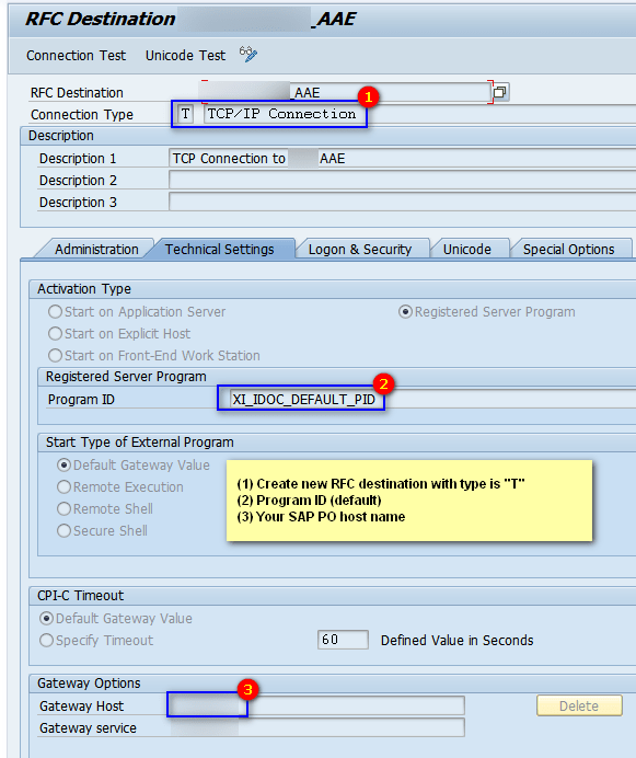 RFC Account used for SAP PO sending data via RFC. Example inbound data via IDOC
