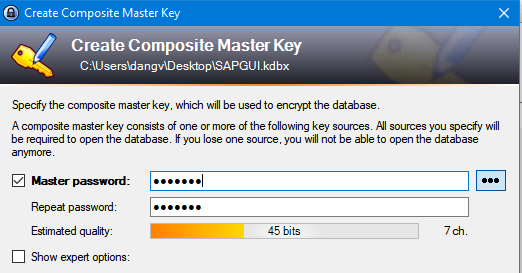 - Enter your master password to keep your database is secure