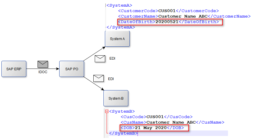 Structure mapping: In your integration landscape, there are may have many system invoked. Each third party system require different data structure and data format.