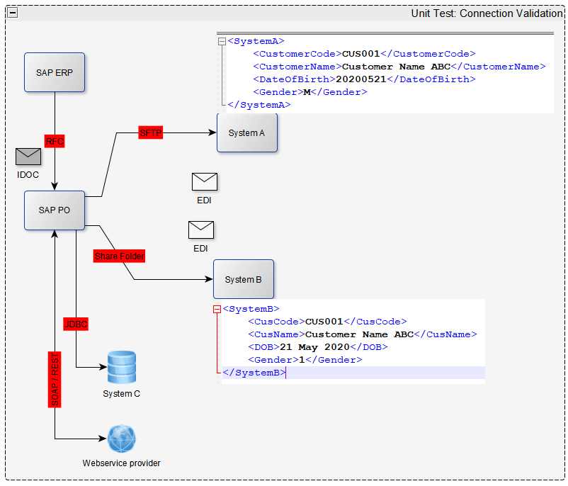 Connection validation: Depend on each integration object, we will use different data transfer protocols. Performing connection test, we can identify issues with network infrastructure, firewall etc.
