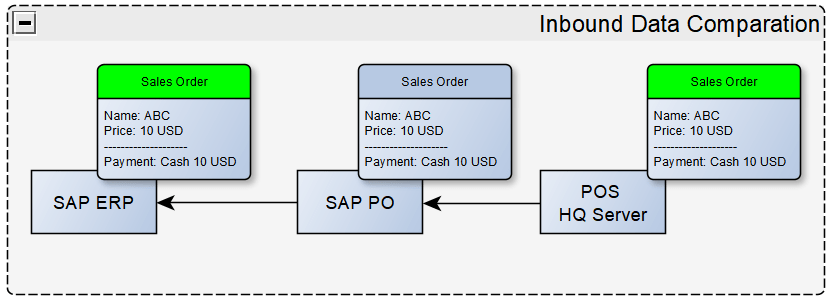 As you see the simple “Sales Order” creation scenario below, SAP will send material and sales price to POS system, Cashier play orders on POS terminal and send back to SAP as Sales Order. This is a general concept only, detailed Sales Order data send back to SAP with a multi-data condition, so we need to finger out how many types of sales orders, discounts are applied, payment method, etc.