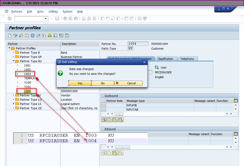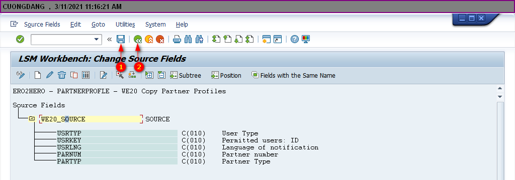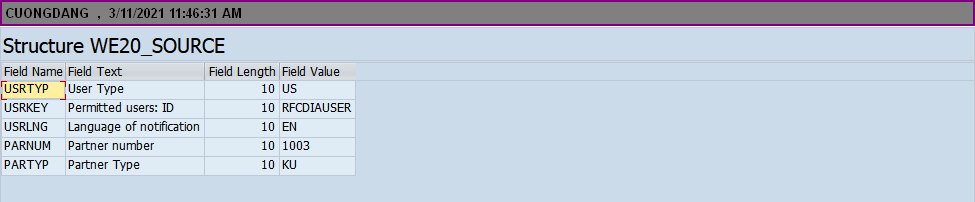 Before do “Copy Partner Profiles”, we need to create one partner profile as template, LSMW will record our copy partner profile action from template to new profile.