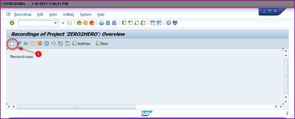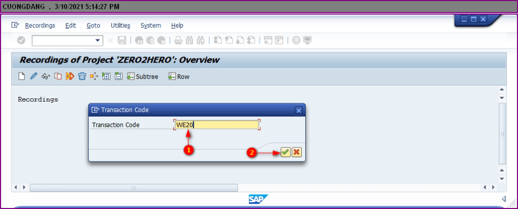 [1] – Enter Transaction Code you want to recording -> [2] Continue