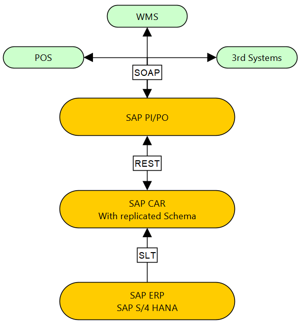 | SAP PI/PO | SAP PI/PO will consume SAP CAR Rest API service and export to SOAP Webservice |