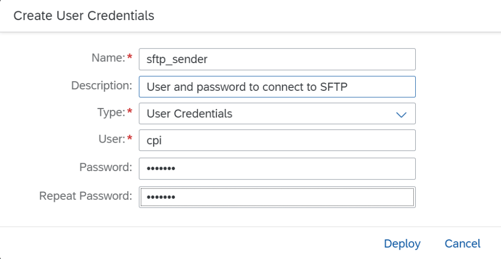 - Name : <Set name for this credential and use in config> ( ex : sftp_sender)