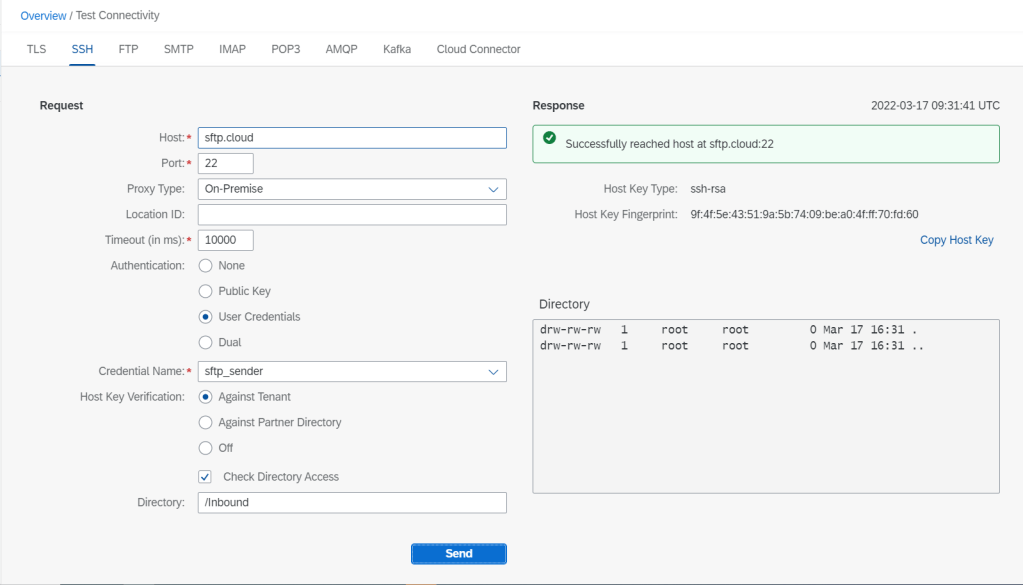I was trying to connect from our TEST CPI to On-Premise SAP ECC AL11 folder using SFTP connection.