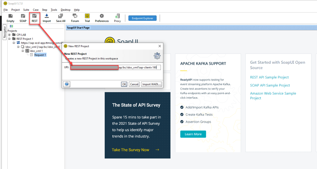 Open SOAPUI, choose REST and post endpoint in it.