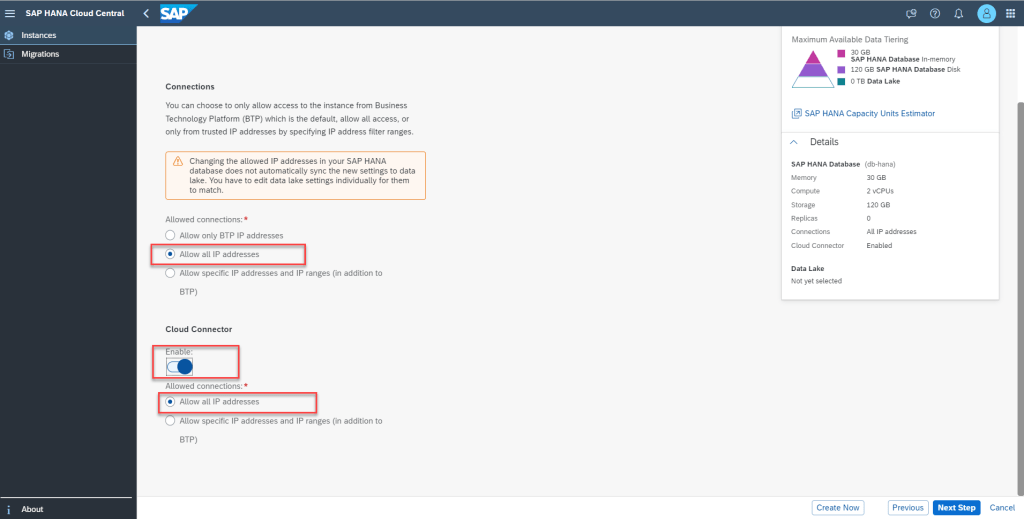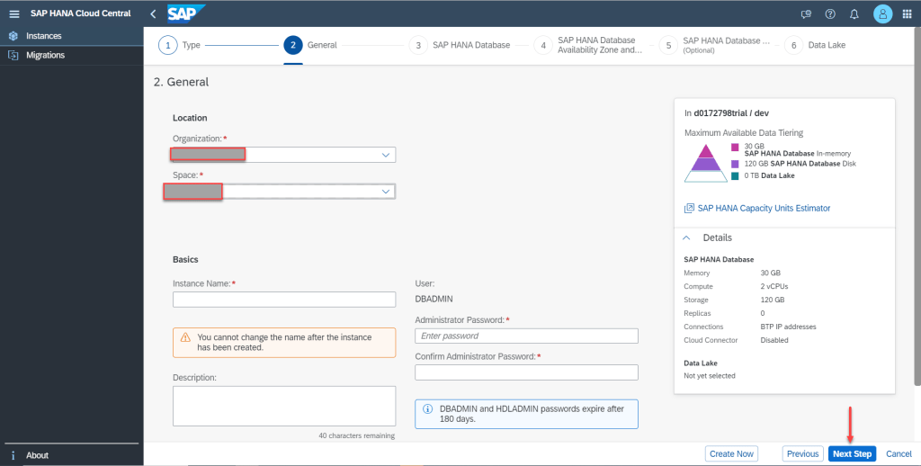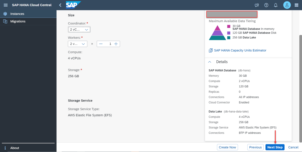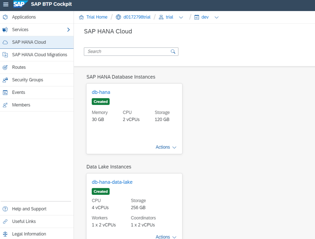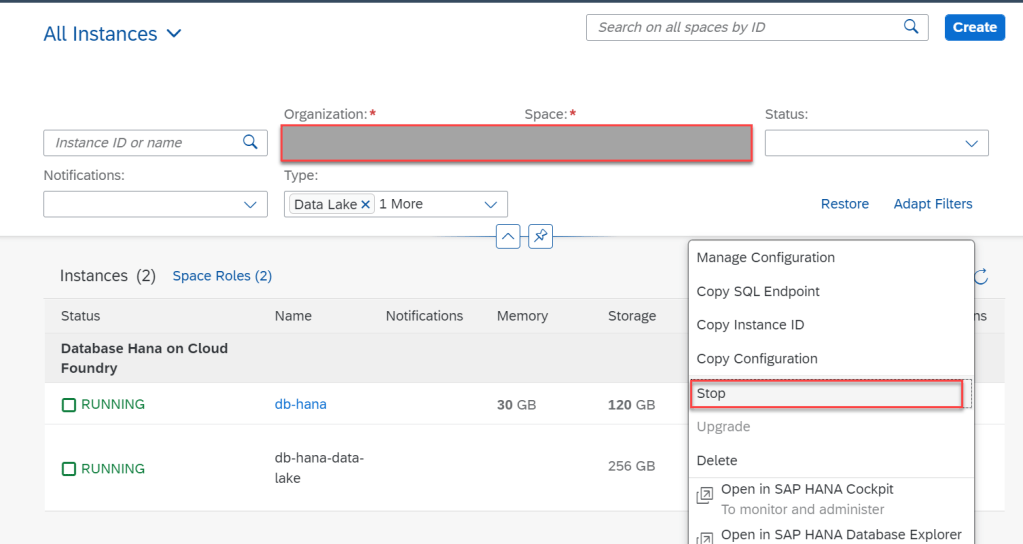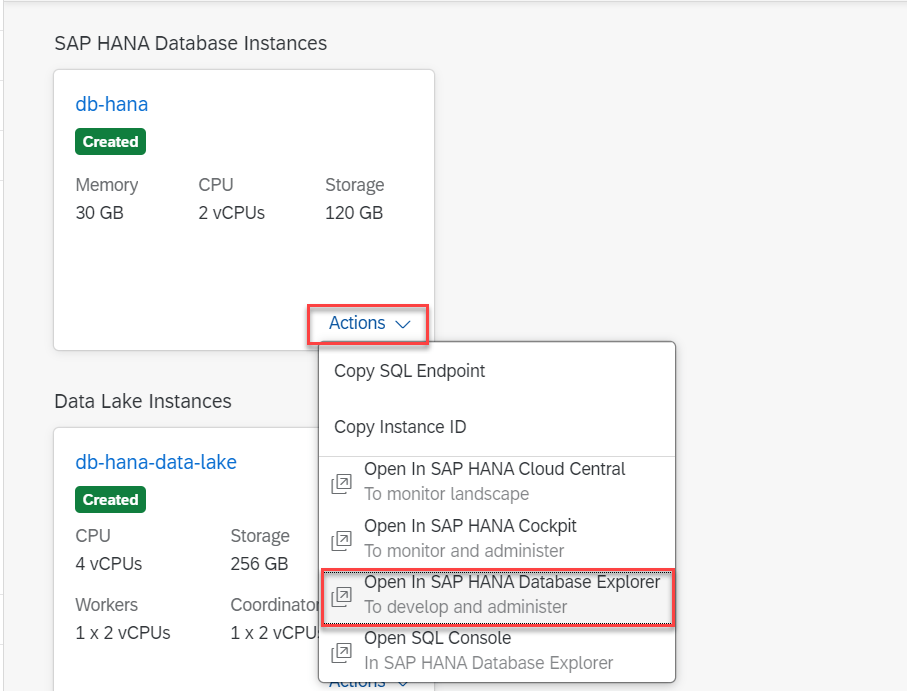 A. Create SAP HANA Database Instances and Data Lake Instances