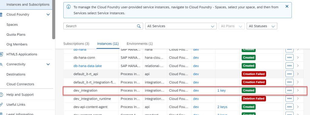 - Go to Instances and Services