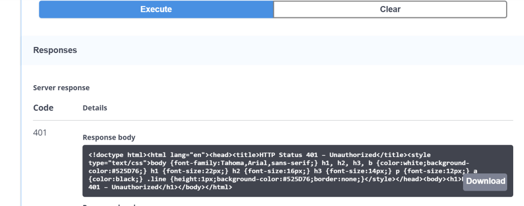 - This time, we receive status 401 because no access token configure here