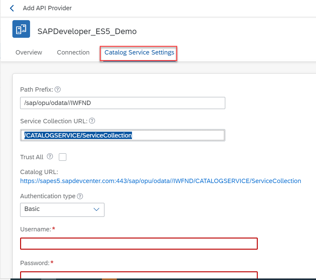 Step 1 : Create API Provider connect to backend SAP Gateway Demo ES5