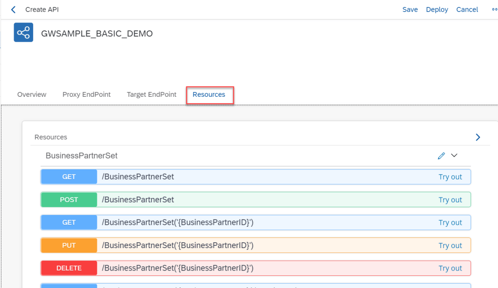 - Tab Resources, we see a list of data service display in Swagger. We can run test every data service