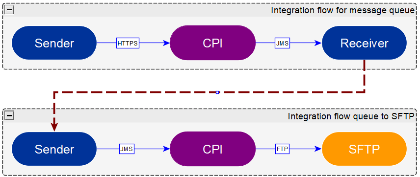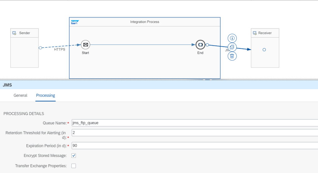 For simple, this integration flow we will just include one sender (HTTPS) and one receiver (JMS)