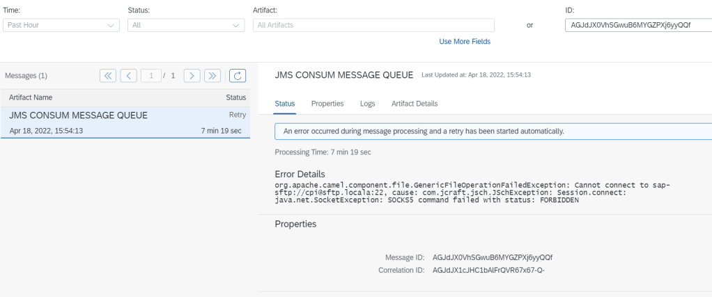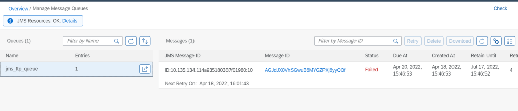 - Case 1 : Cannot connect to SFTP. We will see that message still in queue. Queue try resend message every short time