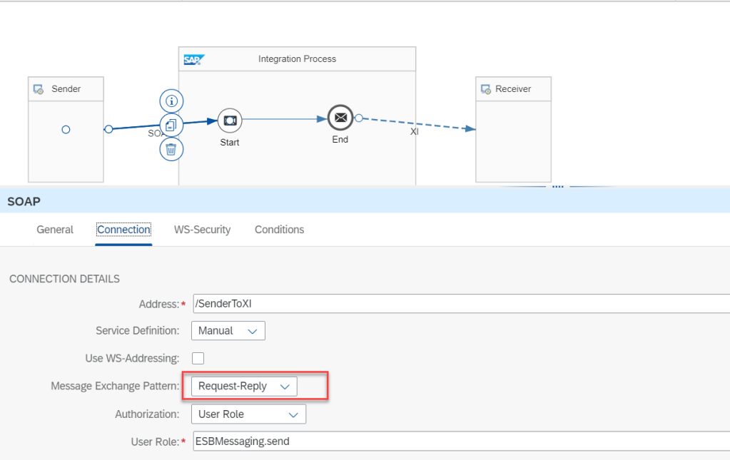 We choose request-reply for message exchange pattern because we want to receive response message from ABAP proxy