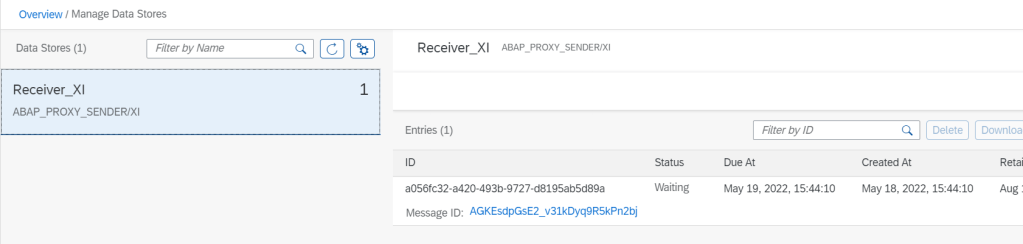 - When Data Store is selected, the message is persisted temporarily in the tenant’s database. The stored message can be monitored in the data store monitor.