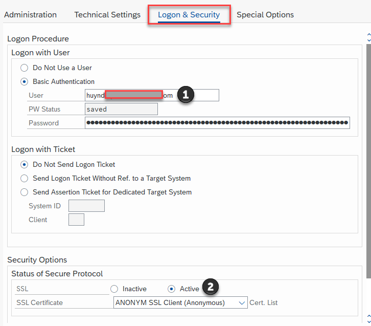 - (2) : Active SSL and select SSL in Cert. List (T-Code: Strust)