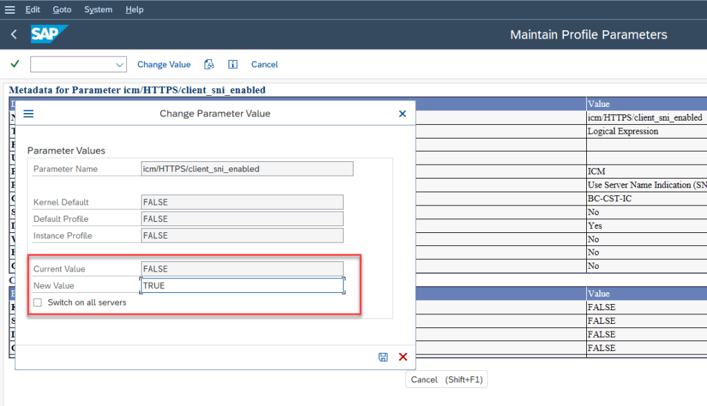 With this issue, because parameter icm/HTTPS/client_sni_enabled is FALSE. So we have to go T-Code RZ11, go this parameter and enable it.