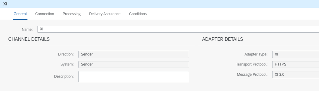 For simple example, I just create simple integration just include one XI Sender Adapter and one SFTP Receiver Adapter.