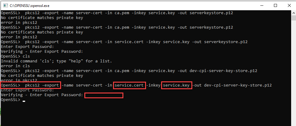 pkcs12 -export -name server-cert -in service.cert -inkey service.key -out dev-cpi-server-key-store.p12