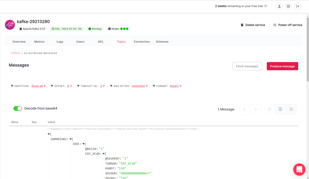Data send from S4/HANA and Save into Kafka with Binary Format
