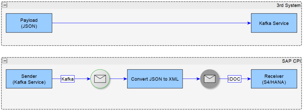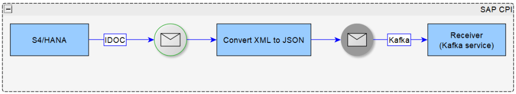 CPI will collect data in Kafka with Kafka sender adapter and send it to S4/HANA by IDOC Receiver adapter.