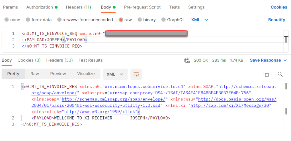 Execute this request, will call to XI Sender and return the payload response. Take look