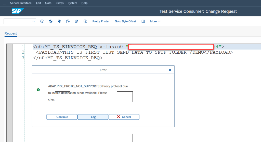 ISSUE 02 – ABAP.PRX_PROTO_NOT_SUPPORTED Proxy protocol due to invalid destination is not available. Please check the configuration of the l