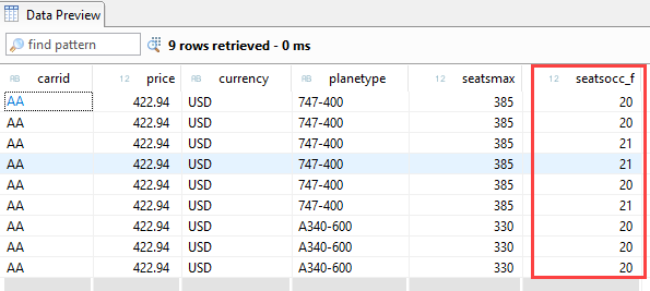 On scenario-01, result will have many data, now we want to get just flight with one more parameter seatsocc_f