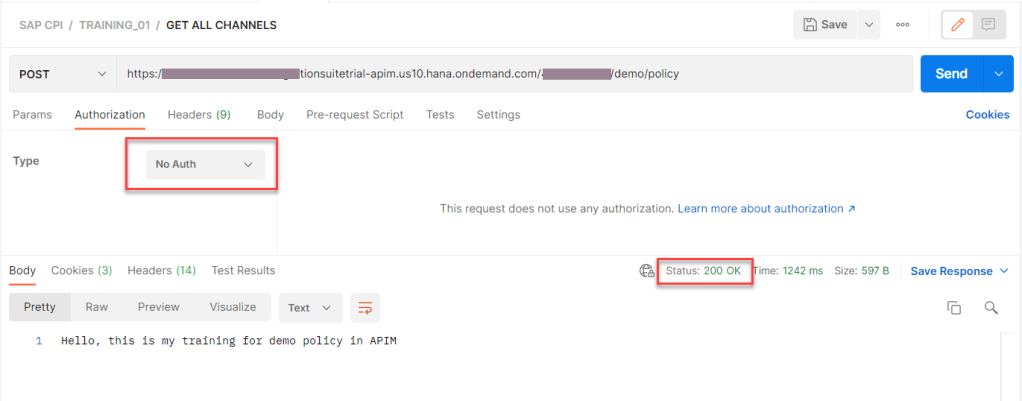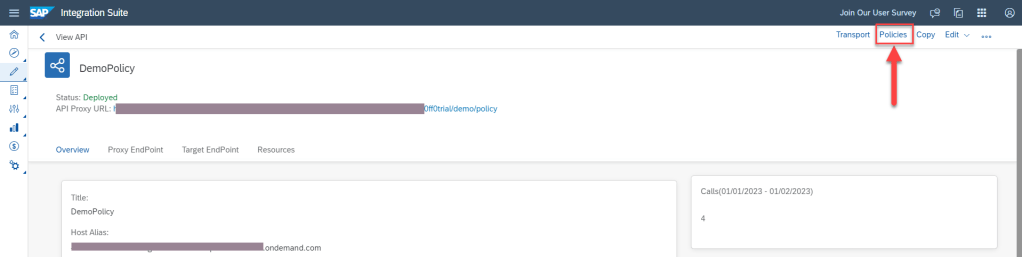 Because of target endpoint is IFLOW, it need access token from service key. So, in this step we will create and appy POLICY to do this.