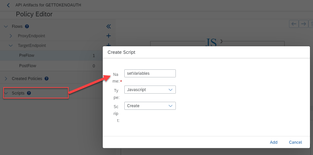 Step 2 : Add Policy JS at Target EndPoint for PRE-FLOW