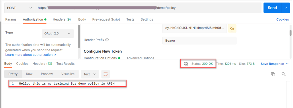 - Configuration Policy for Main API – Above API – connect to API access token with dynamic value