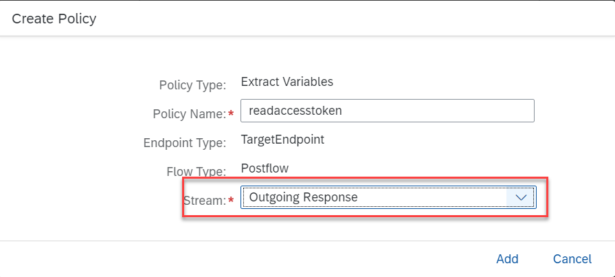 You can apply a policy on the request or response stream. You can also specify if it’s applicable on the proxy endpoint or target endpoint. For more information, see SAP Help