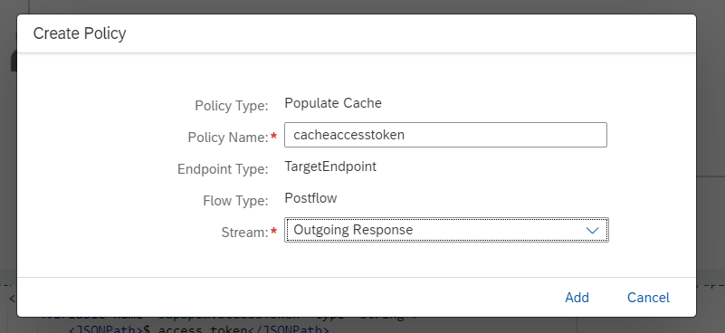 In this step, we will use POLICY POPULATE CACHE to store access token