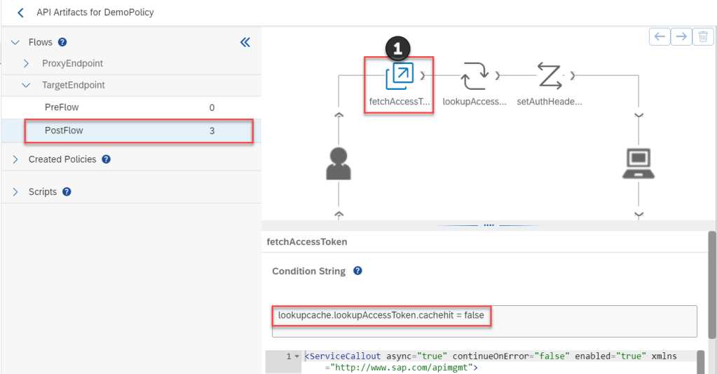 To deploy this check access token in cache we will use CONDITION-STRING in policy with flow variable. For more detail VARIABLE kindly view SAP Help