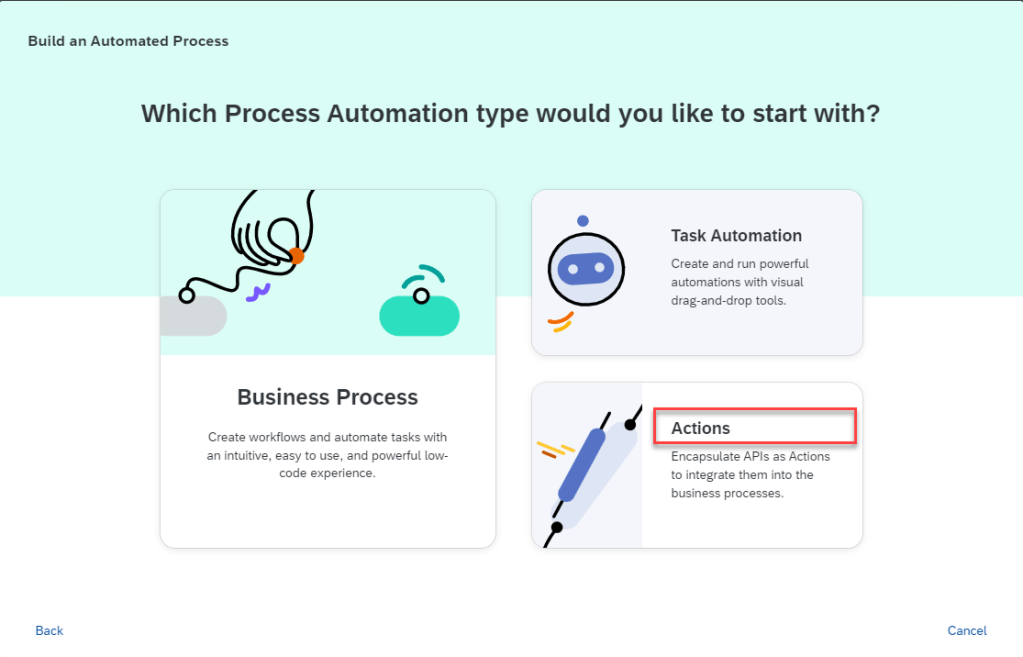 STEP 2 CREATE AND CONFIGURATION ACTION PROJECT IN SAP PROCESS AUTOMATION