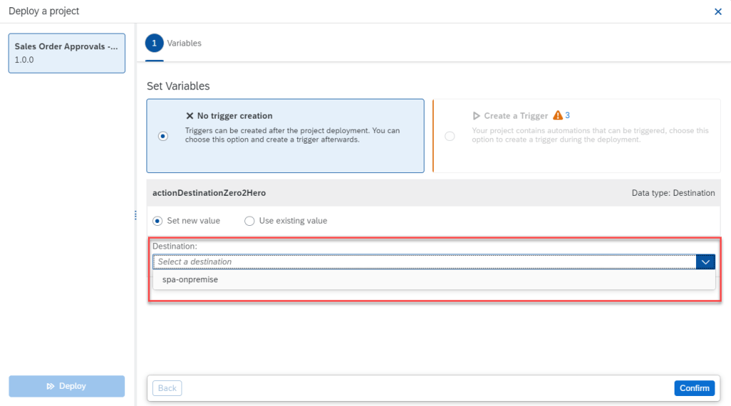 Next, we have to release and deploy business process, when deploy we have to choose destination which configured in SAP BTP