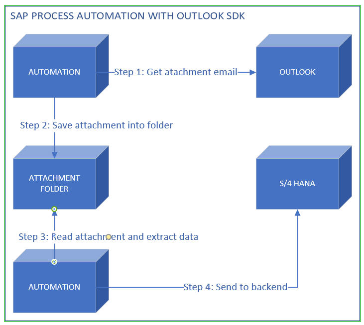 In this article I shared how to working with Outlook SDK in SAP Process Automation. This is step 1 and step 2 in diagram box above. After save attachment into folder local, we can create another automation read this attachment file and extract data in there. Thanks for your reading and any advise, kindly leave your comment on this.