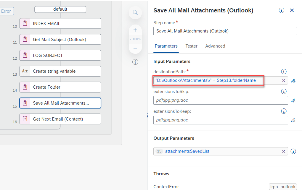 - Save mail attachment: If you want save one attachment with property attachmentFileName