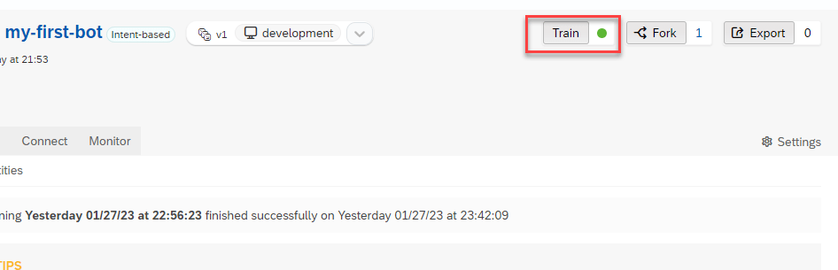 - TRAIN – Teach your bot what it needs to understand