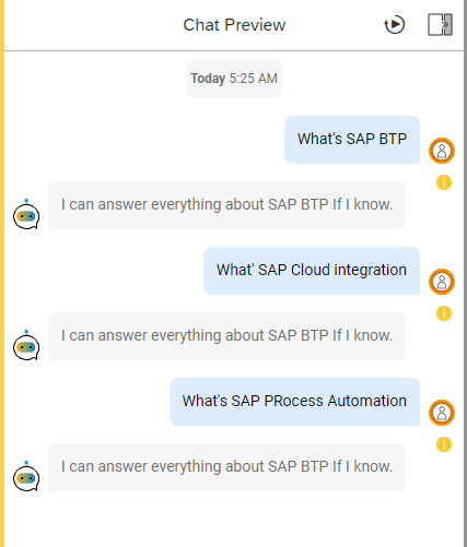 SAP Conversational AI offers a single intuitive interface to train, build, test, connect and monitor chatbots embedded into SAP and third-party solutions, a high-performing natural language processing (NLP) technology and low-code features to ensure faster development. Simplify access to information and deliver personalized human-like conversations. Scale businesses by reducing development efforts and costs within support teams. Enhance user satisfaction by automating tedious tasks.