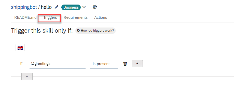 We want to activate our skill when an expression contained in the @GREETINGS intent is present.