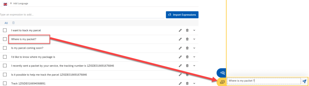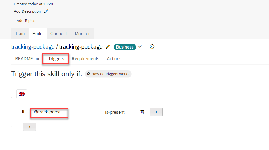 - Set trigger for BOT with only intent @track-parcel