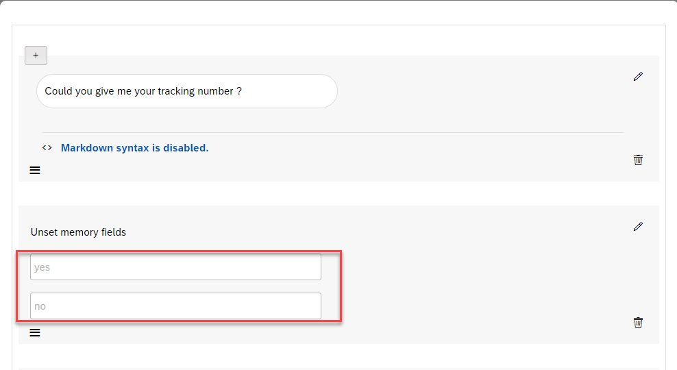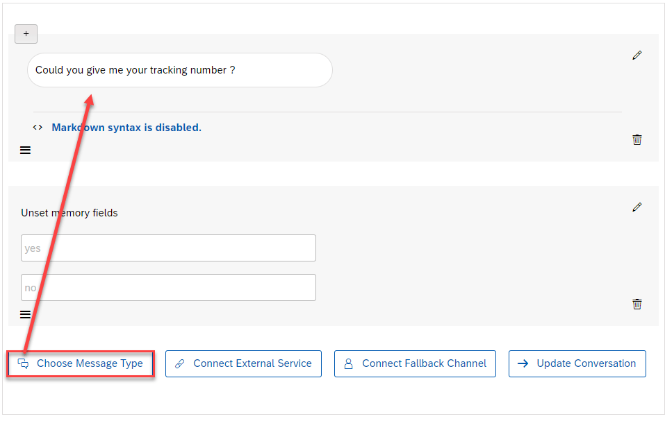 Choose update conversation and clear @yes and @no