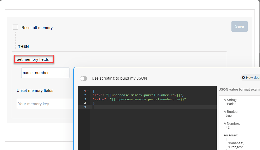 "value": "{{uppercase memory.parcel-number.raw}}"