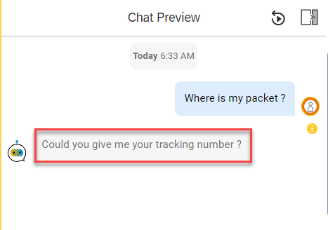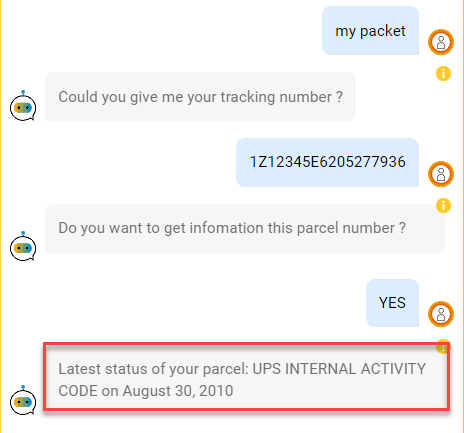 Extraction data from conversation will be success (Complete) or missing because of user can input sentenses which no contain track-number in it. In this case we will reply answer from BOT