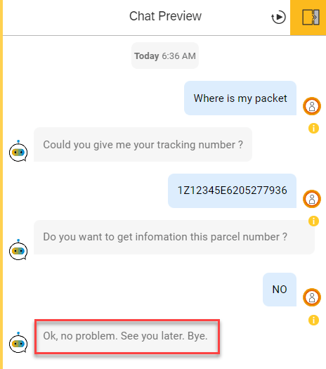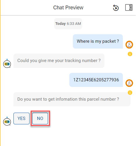 If user click NO button, BOT will reply message and the end.