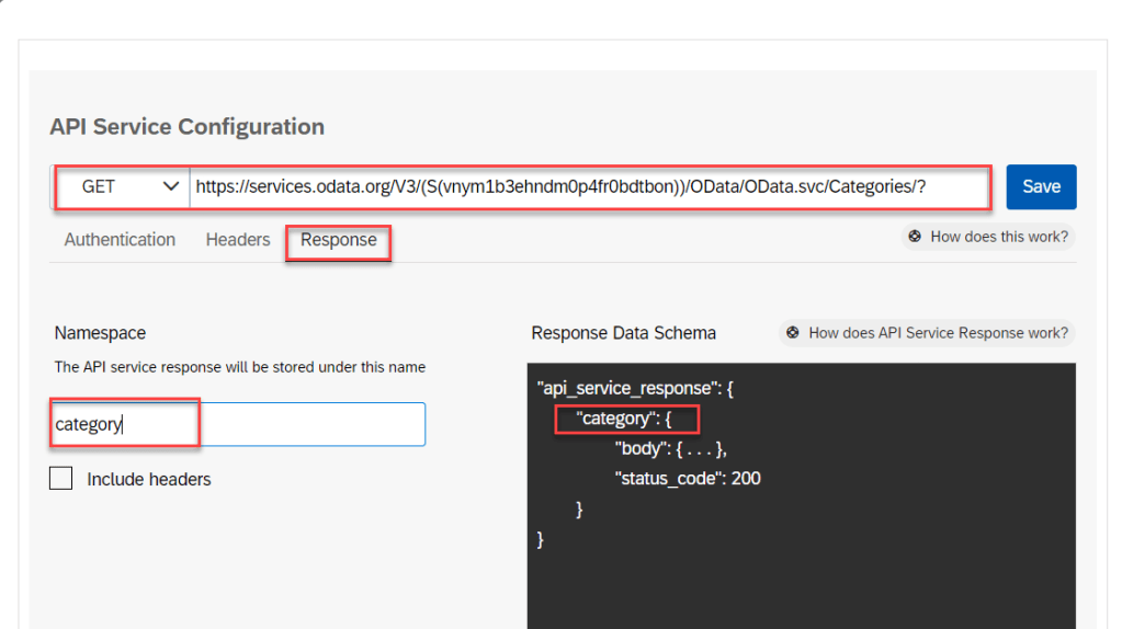 - Configuration for missing data of #category. This time, we will call to ODATA API to get more category with endpoint