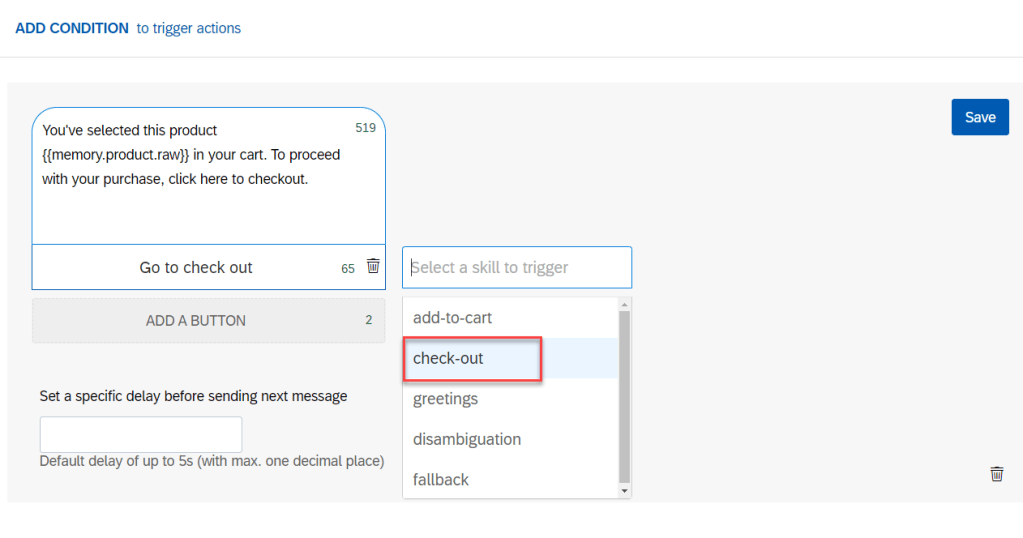 You've selected this product {{memory.product.raw}} in your cart. To proceed with your purchase, click here to checkout.