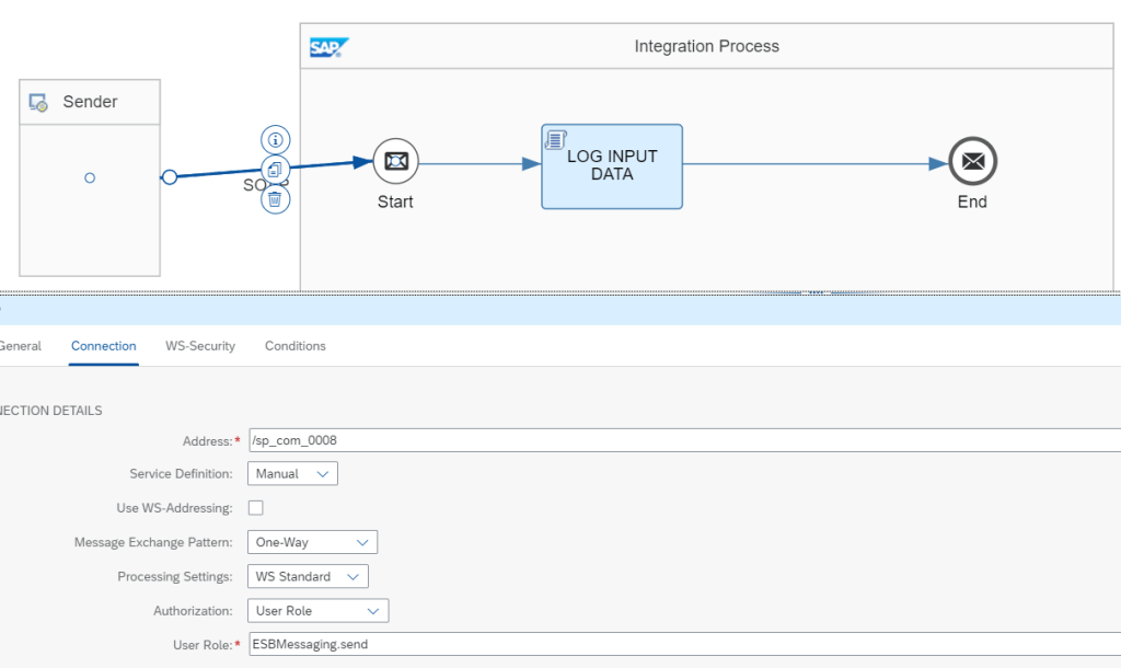 Add sender adapter is SOAP because of we use communication scenario (SP_COM_0008)